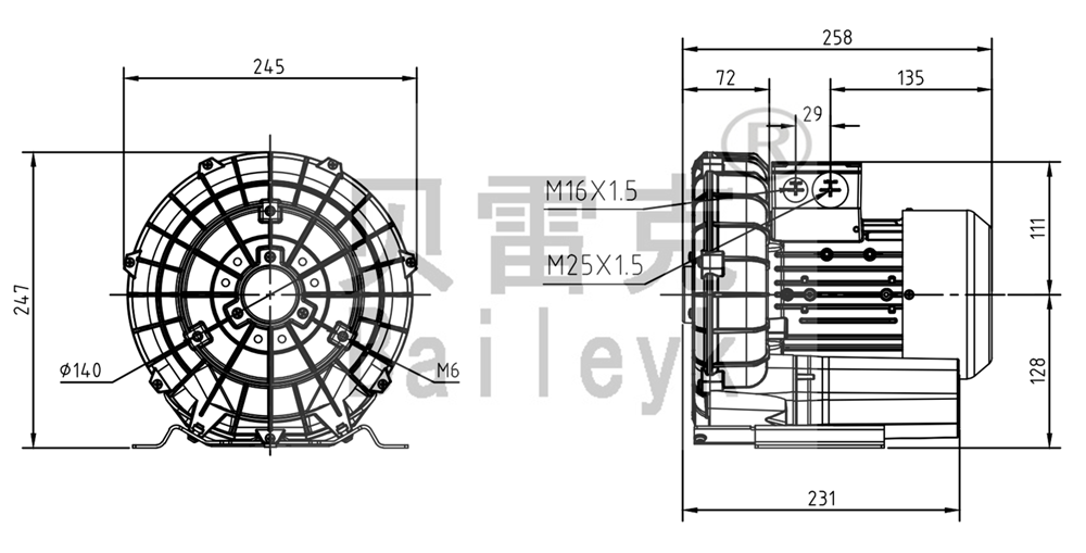 最大風量:80m3/h 最大正壓:110mbar 最大負壓:100mbar 防護等級:IP55 噪音:53db 重量:9Kg