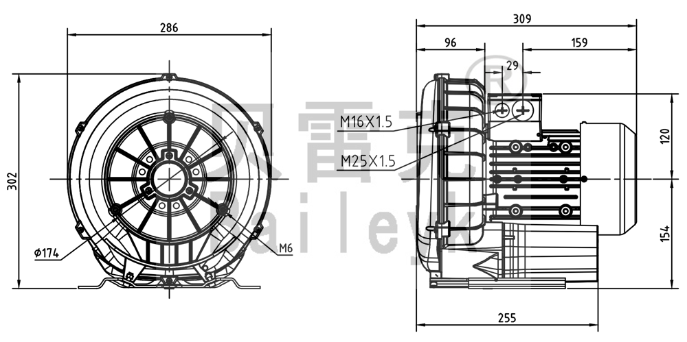 最大風量:180m3/h 最大正壓:180mbar 最大負壓:180mbar 防護等級:IP55 噪音:64db 重量:18Kg