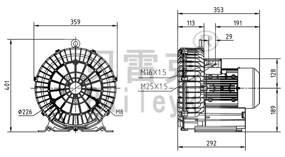 最大風(fēng)量:270m3/h 最大正壓:180mbar 最大負(fù)壓:170mbar 防護(hù)等級(jí):IP55 噪音:67db 重量:24Kg
